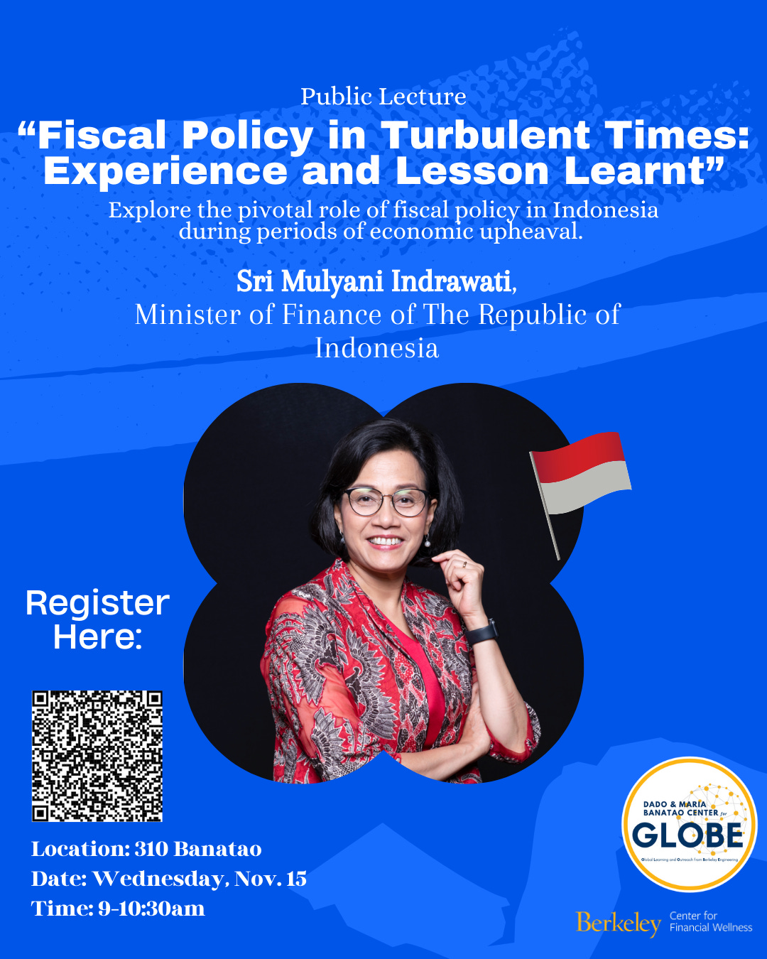 Wednesday November 15 9:00-10:30 - Sri Mulyani Indrawati, Minister of Finance of the Republic of Indonesia.