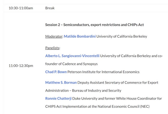 After APEC wraps up, the Clausen Center for International Business and Policy will hold its 4th biennial Conference on Global Economic Issues: Deglobalization and Fragmentation. The conference will be in Spieker Forum at Chou Hall at the Haas School of Business. Registration is here. I’m particularly looking forward to the panel on semiconductors.