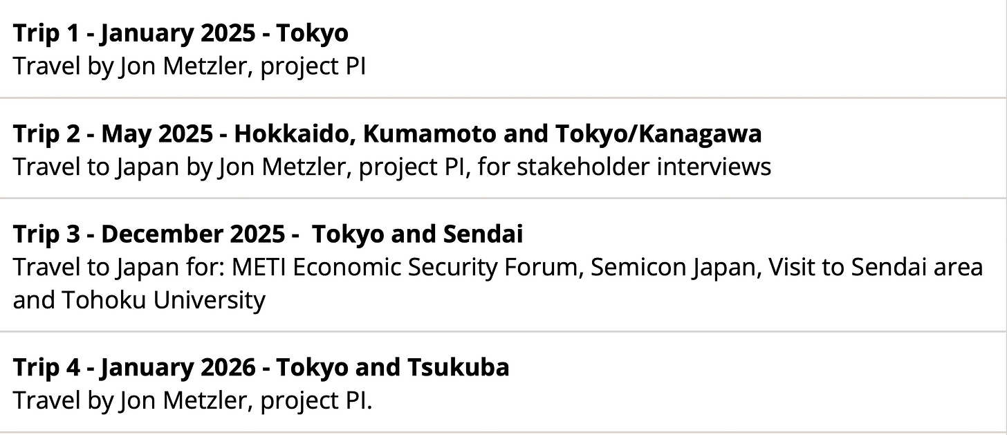 First, as background for new readers: with support from UC Berkeley Risk and Security Lab, the Institute for Business Innovation at the Haas School of Business, and the UC Berkeley Center for Japanese Studies, as well as support from METI, JETRO, the Consulate of Japan in San Francisco, and local university partners and hosts, I’ve been conducting stakeholder interviews since late 2024. The project got off to a soft start in summer 2024.